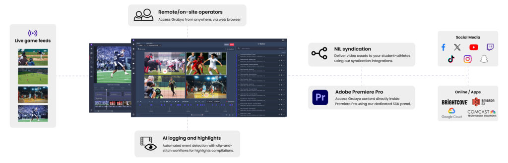 Capturing every moment, clipping highlights in real time and pushing content across social is tough for any college production team. With multiple sports happening at once, limited resources and tight budgets, keeping fans engaged and athletes supported often feels impossible. Grabyo makes social video simple, and fast!
